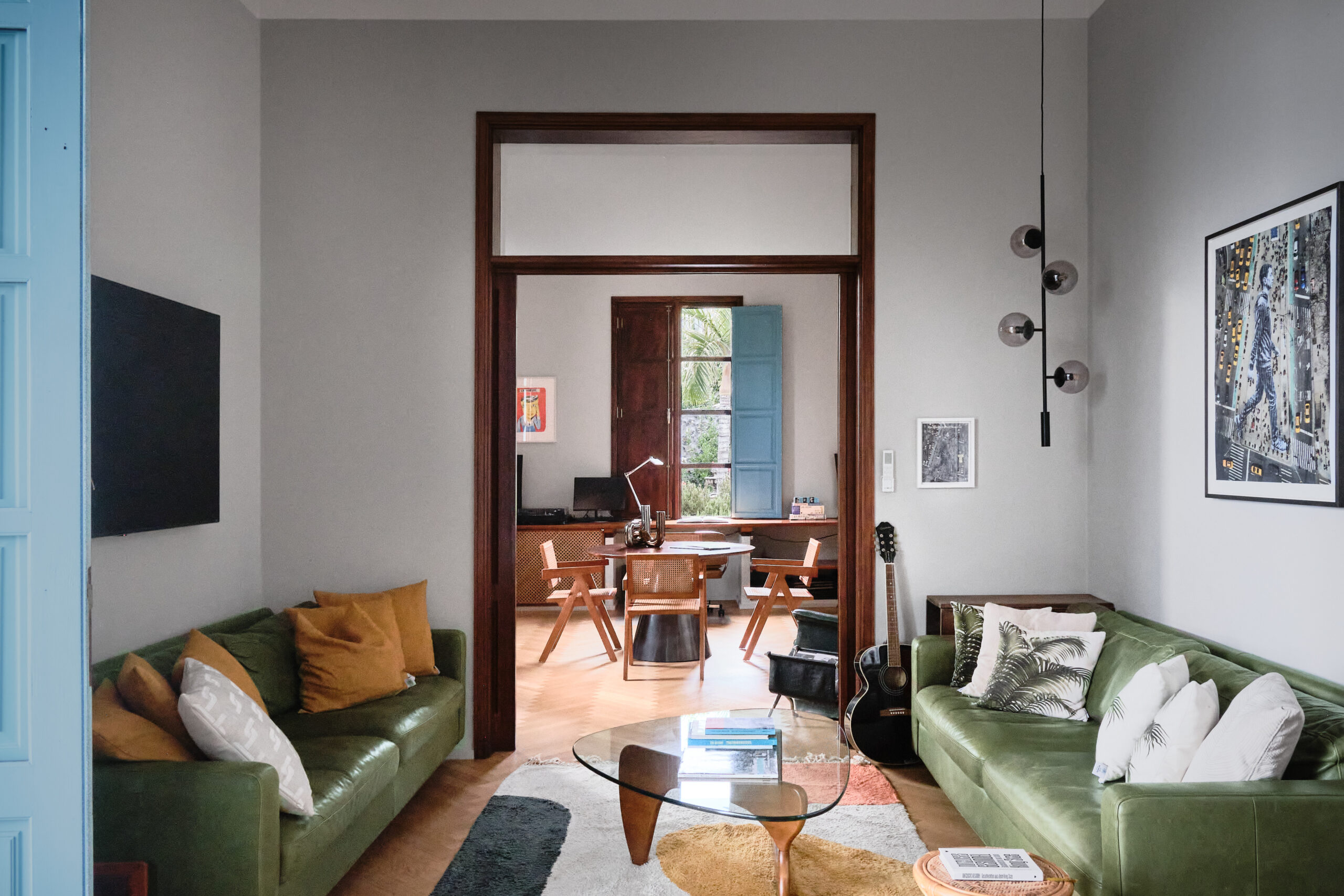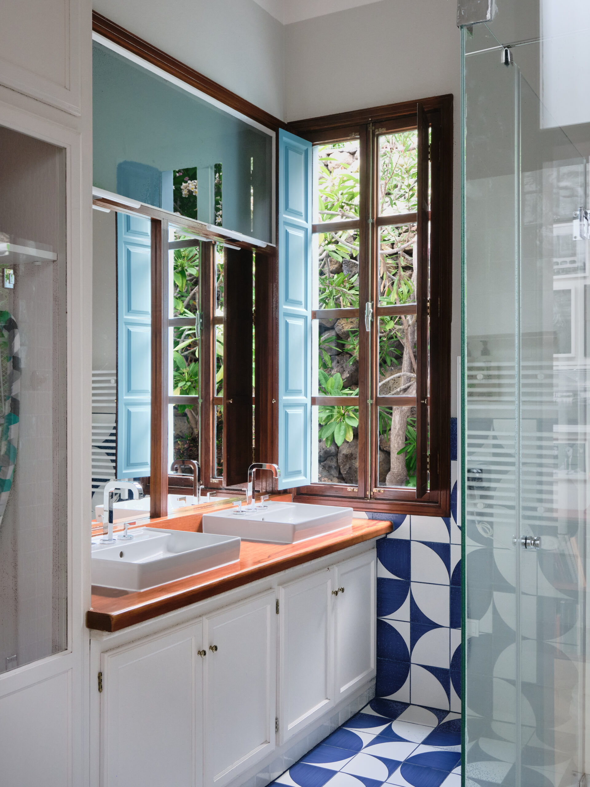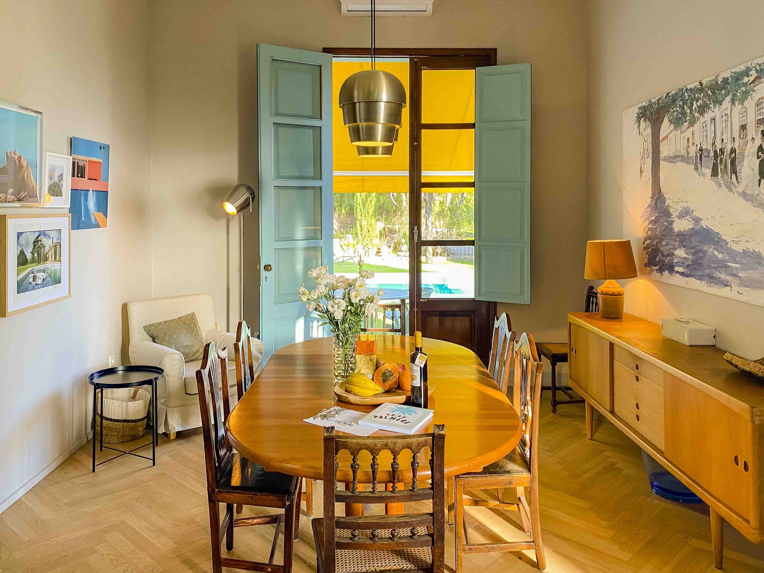 The light-flooded villa feat interior design classics alike Eames, Rohe or Gray combined with classic Palmerian furniture. The 2 bathrooms are individually designed and equipped with high-quality showers, fittings & underfloor heating. The bright kitchen is a colorful meeting point of the house with direct access to the pool/terrace.